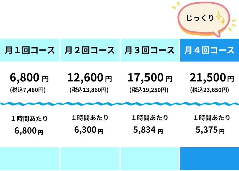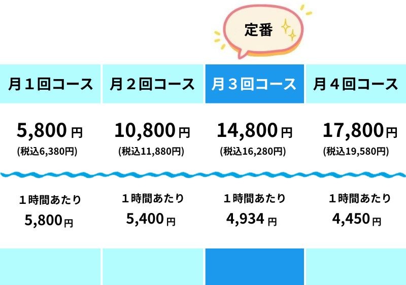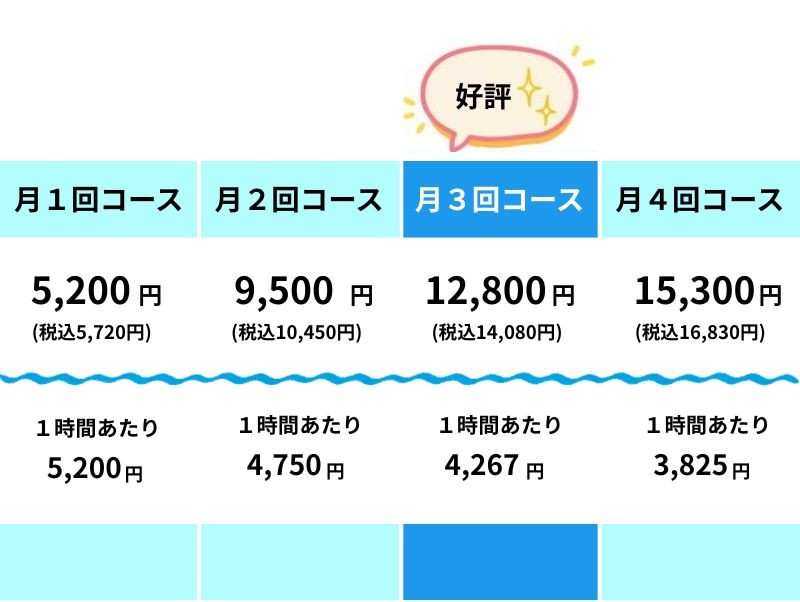 (スタジオに入室してから退室するまでが1時間となり、セッティング、片付けの時間を含みます。) - 追加料金なし!出張費も教材費もレッスン代に含まれているので安心です。