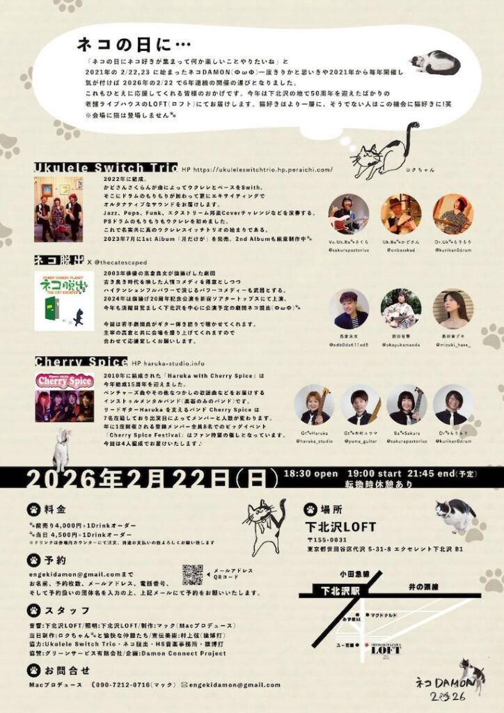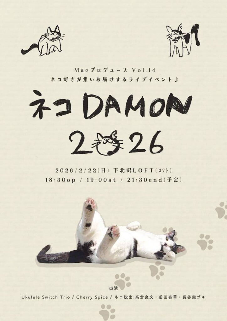 MacプロデュースVol.14 ネコ好きが集いお届けするライブイベント「ネコDAMON2026」に出演します。
