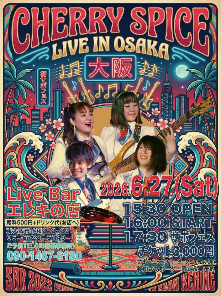 Cherry Spice 大阪ライブは今年で4年連続4回目です。そして今回は、なんと関西初となる「サポーターフェスティバル」も同時開催!